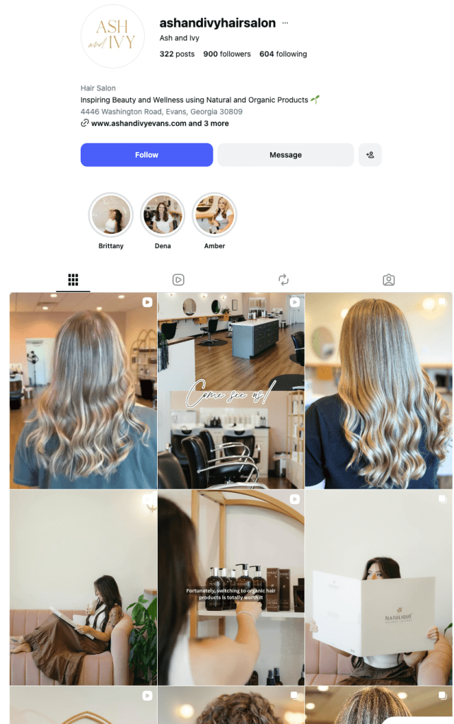 Over the past few months, I’ve been working with salons like Ash & Ivy Salon in Evans, Georgia (@ashandivyhairsalon), and one thing has become crystal clear: the salons that grow the fastest are not always the most experienced or even the busiest—they’re the ones that know how to consistently show up on social media with intention.
